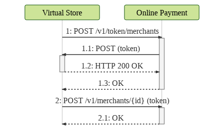 - 2. Then, the Virtual Store sends merchant creation request, containing the previously obtained token.